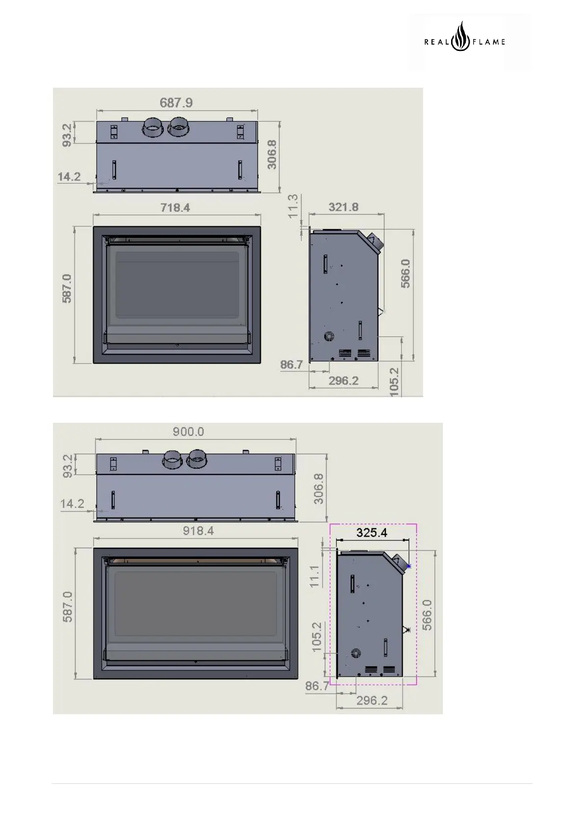 Real Flame 700 - MODEL DIMENSIONS; Inspire 700 Dimensions; Inspire 900 Dimensions