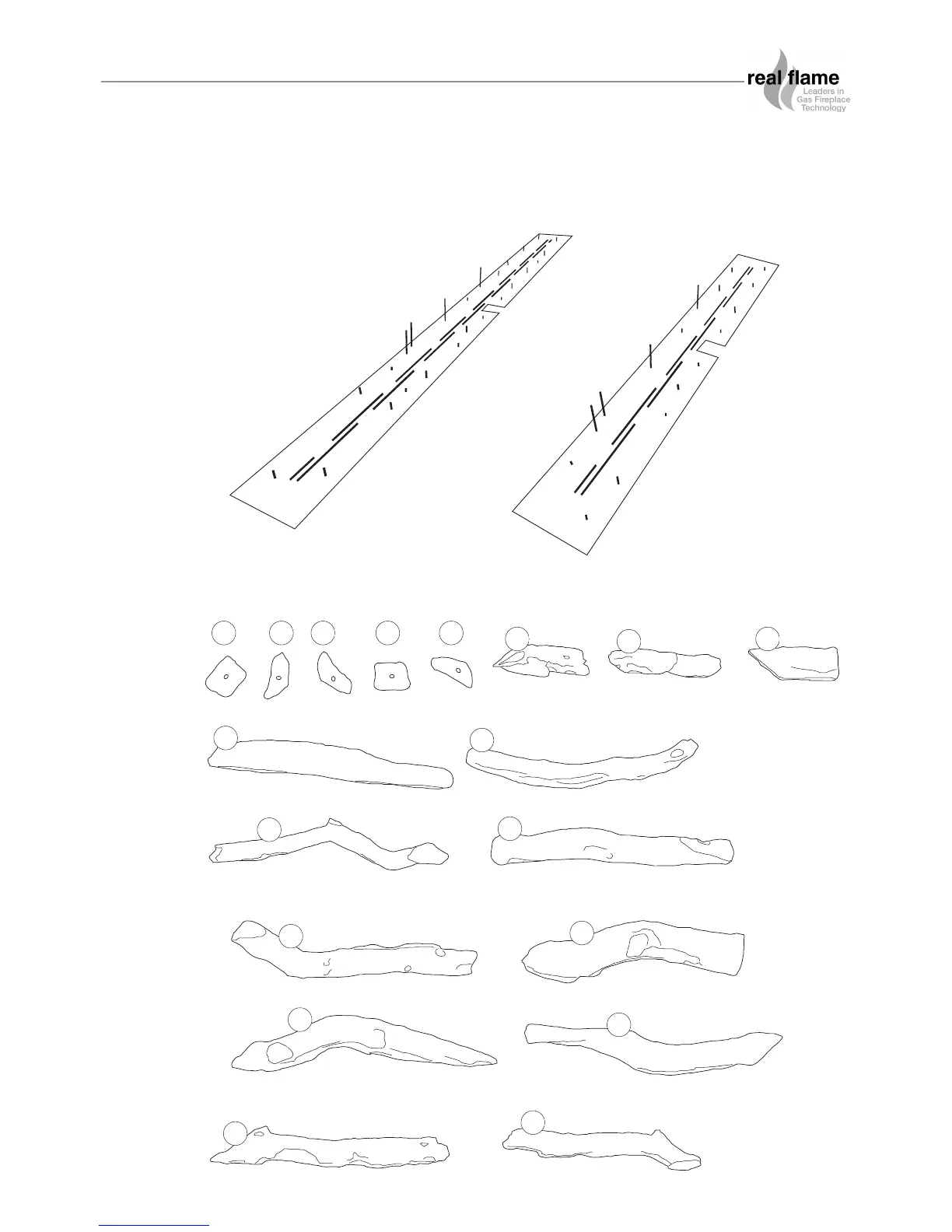 Real Flame LANDSCAPE BALANCED - Logset Assembly Guide; 1600 Model Logplate Layout; 1000 Model Logplate Layout; Individual Log Components