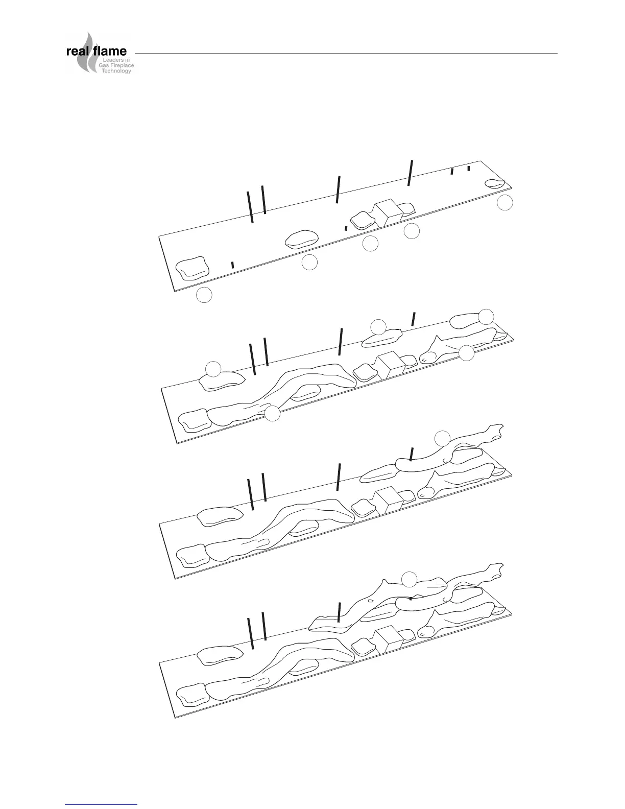 Real Flame LANDSCAPE BALANCED - Landscape 1000 Logset Assembly Steps; Logset Step 1: Initial Placement; Logset Step 2: Adding Components; Logset Step 3: Further Arrangement