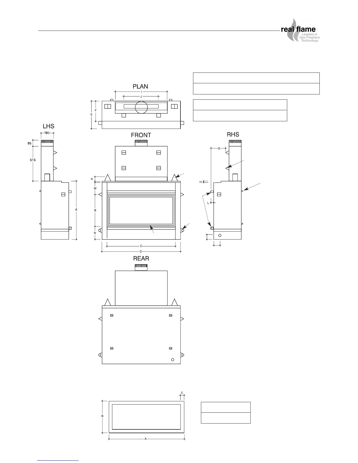 Real Flame LANDSCAPE BALANCED - Landscape 1000 Dimensions; Main Unit Dimensions; Trim Dimensions
