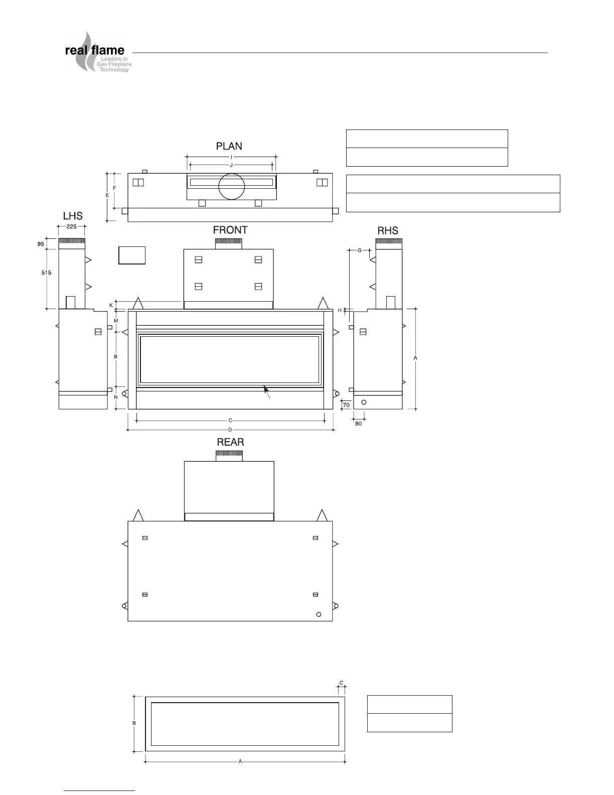 Real Flame LANDSCAPE BALANCED - Landscape 1600 Dimensions; Main Unit Dimensions; Trim Dimensions