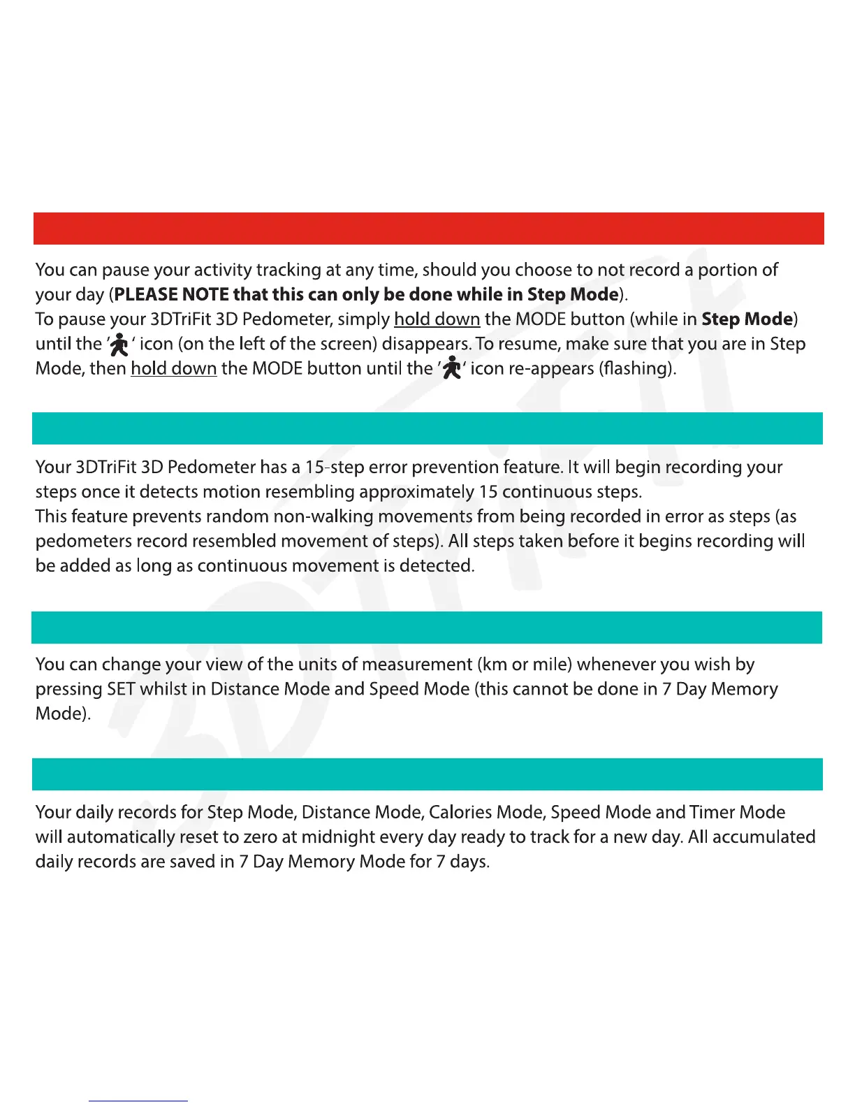 Realalt 3D TriFit - PAUSE FEATURE; Using the Pause Feature; 15 STEP ERROR PREVENTION FEATURE; Error Prevention Feature