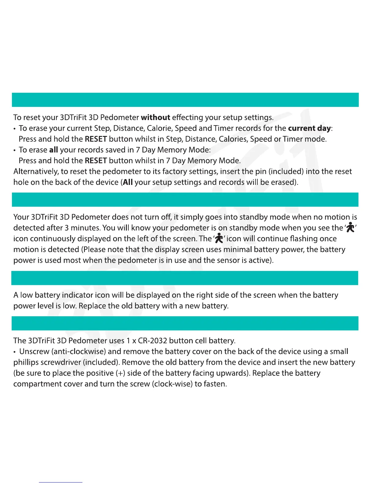 RESETTING YOUR 3D PEDOMETER