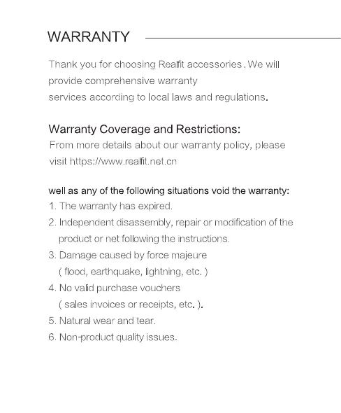 Realfit GoPods E5 - WARRANTY; Warranty Coverage and Restrictions