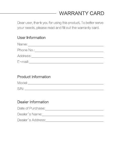 Realfit GoPods E5 - WARRANTY CARD; User Information; Product Information; Dealer Information