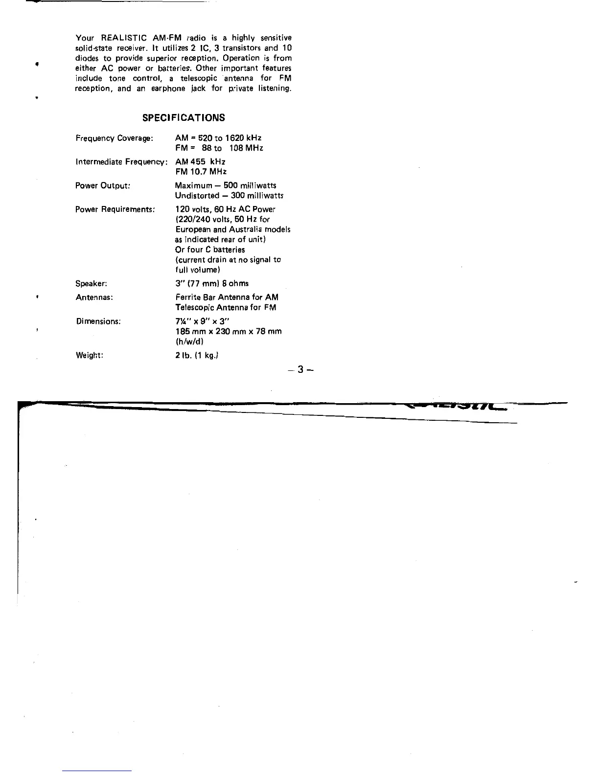 Realistic 12-716 - Specifications