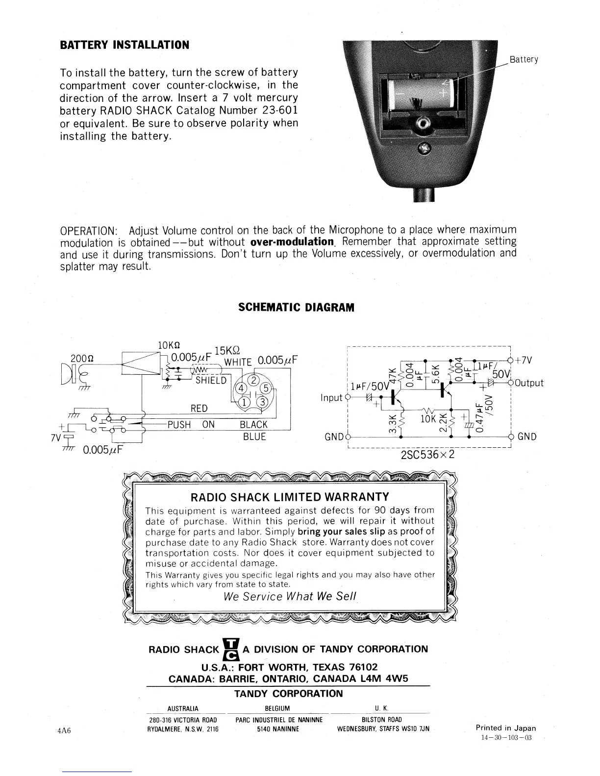 battery RADIO SHACK Catalog Number 23-601