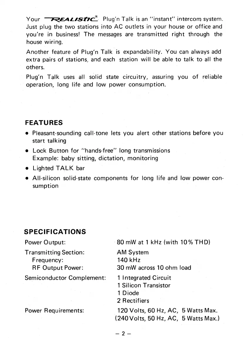 Plug'n Talk uses all solid state circuitry, assuring you of reliable