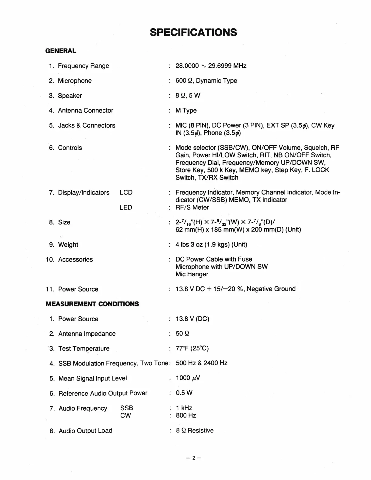 SPECIFICATIONS