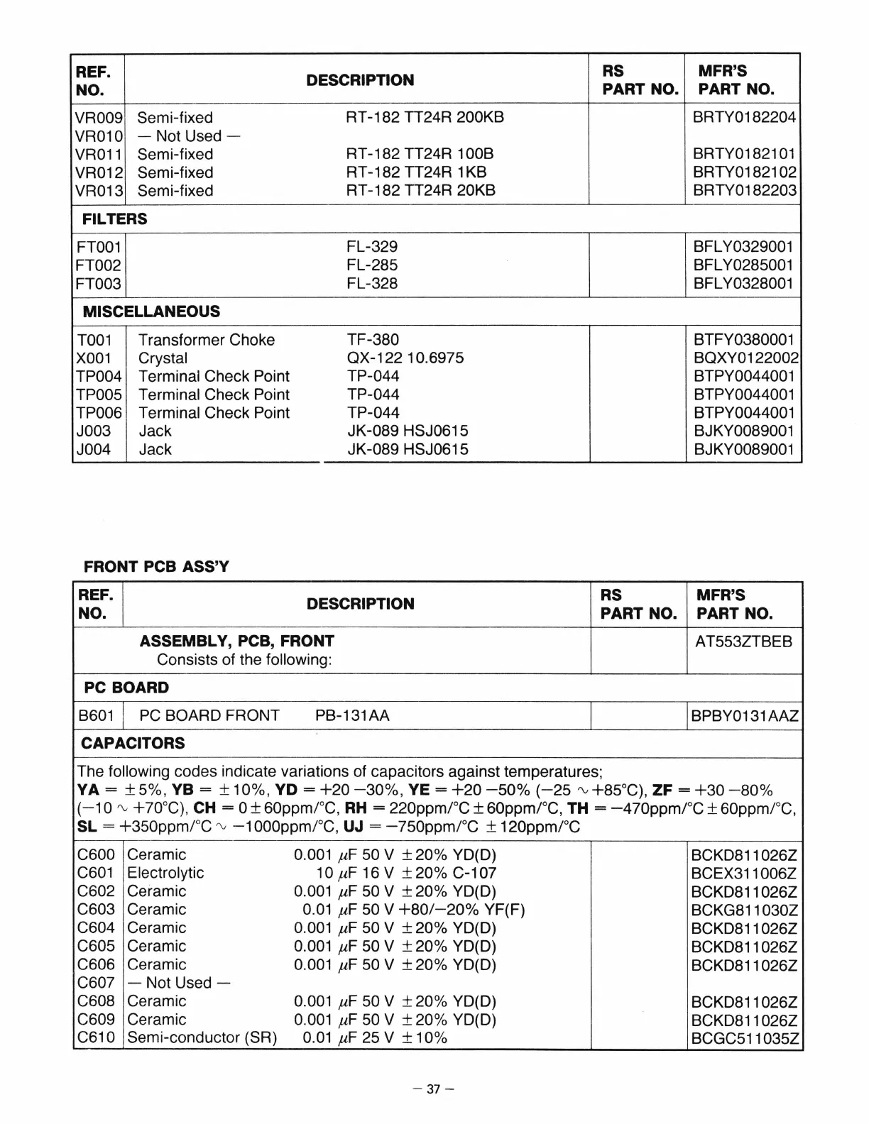 The following codes indicate variations of capacitors against temperatures;