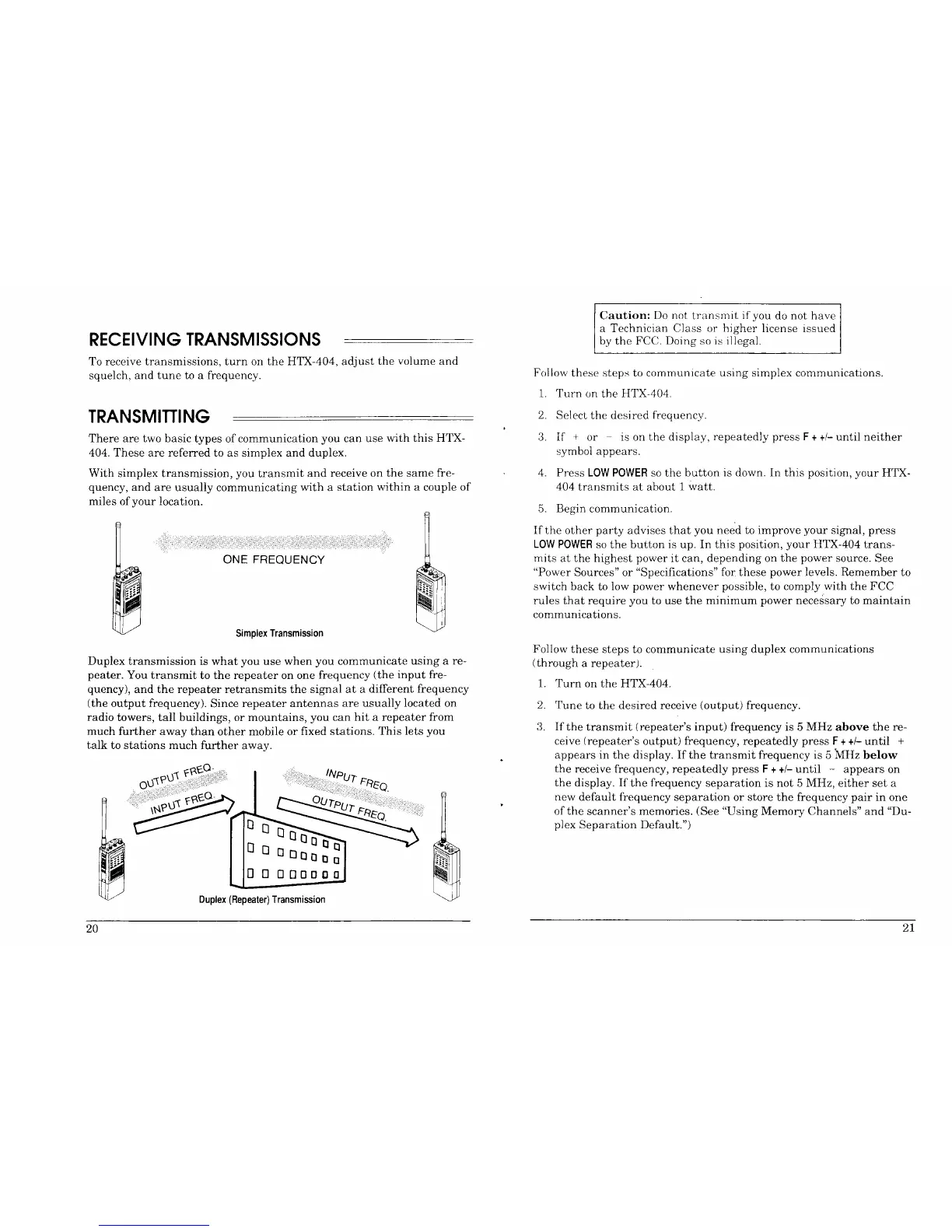 Realistic HTX-404 - RECEIVING TRANSMISSIONS; TRANSMITTING