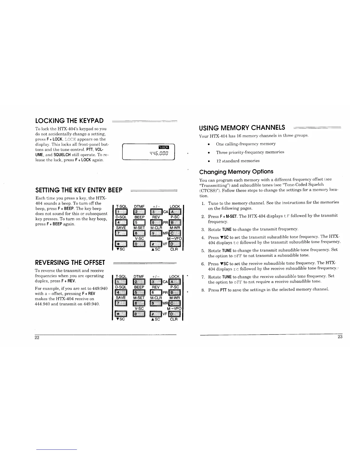 Realistic HTX-404 - REVERSING THE OFFSET; USING MEMORY CHANNELS; Changing Memory Options