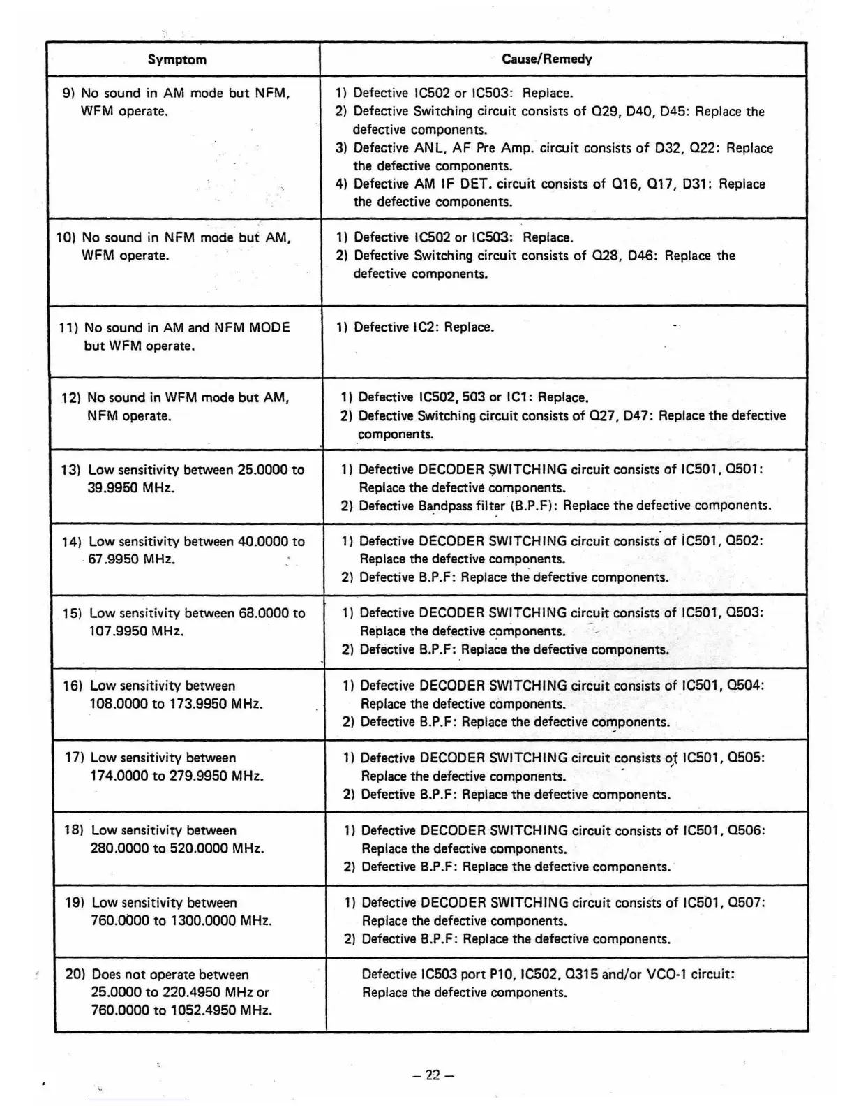 2) Defective Bandpass filter (B.P.F): Replace