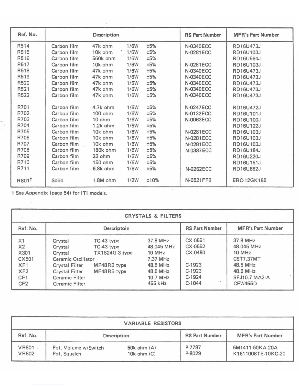 Realistic PRO-2004 - Crystals, Filters, and Variable Resistors