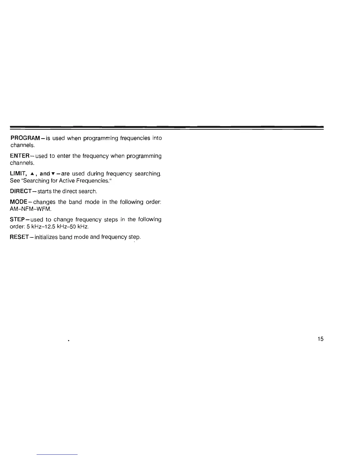 RESET - initializes band mode and frequency step.