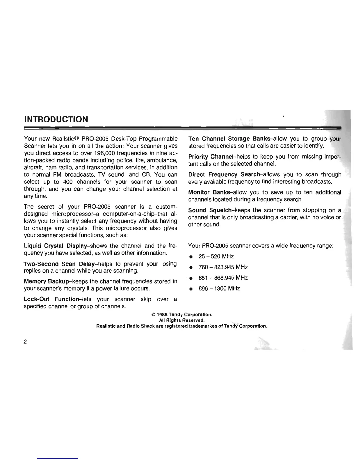 Your new Realistic® PRO-2005 Desk-Top Programmable