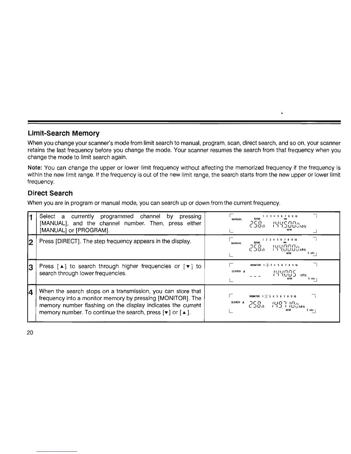 retains the last frequency before you change the mode. Your scanner resumes the search from that frequency when you