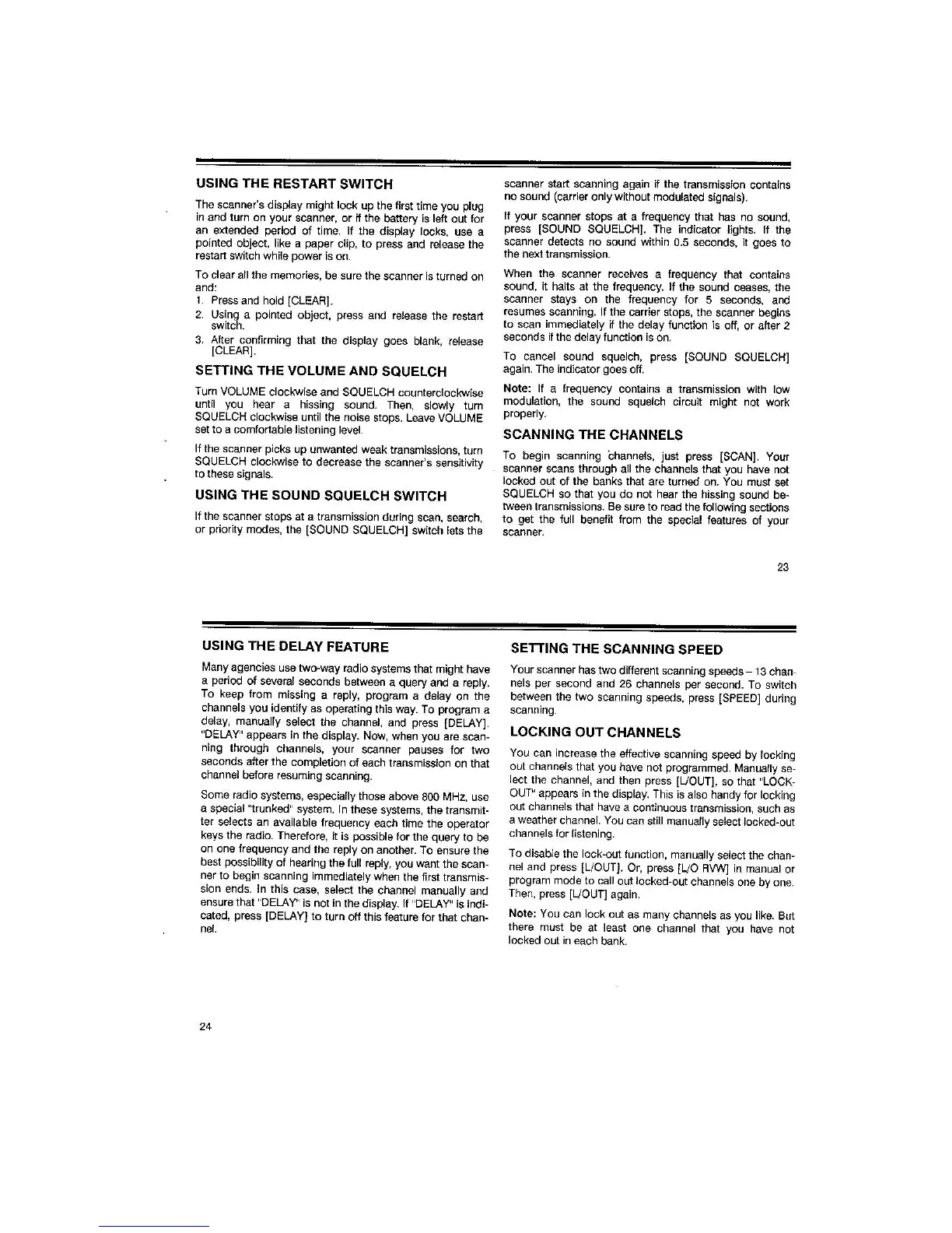 Realistic PRO-2006 - Scanner Settings and Features; Using the Restart Switch; Setting Volume and Squelch; Scanning Channels