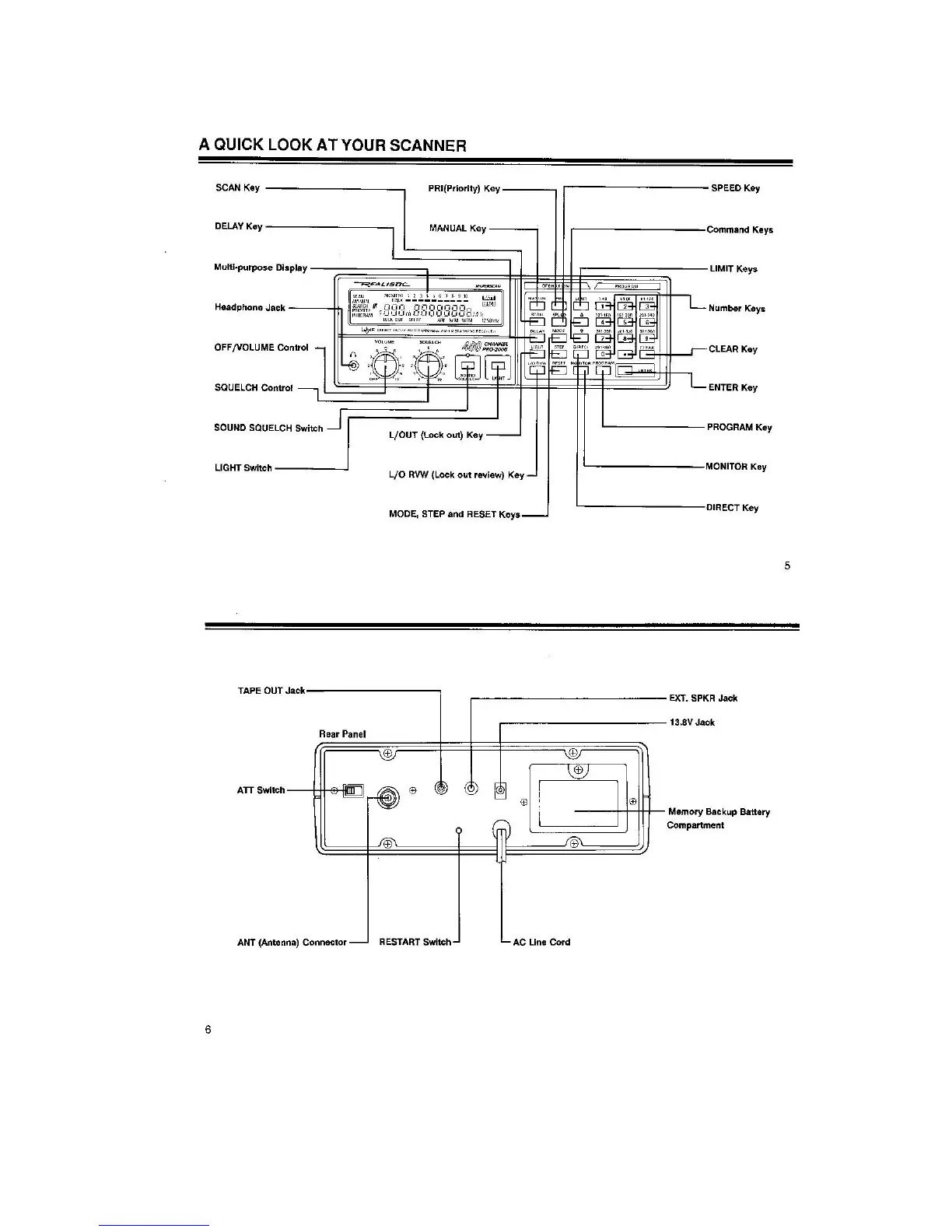 Realistic PRO-2006 - Scanner Overview and Components; Display and Control Panel Overview