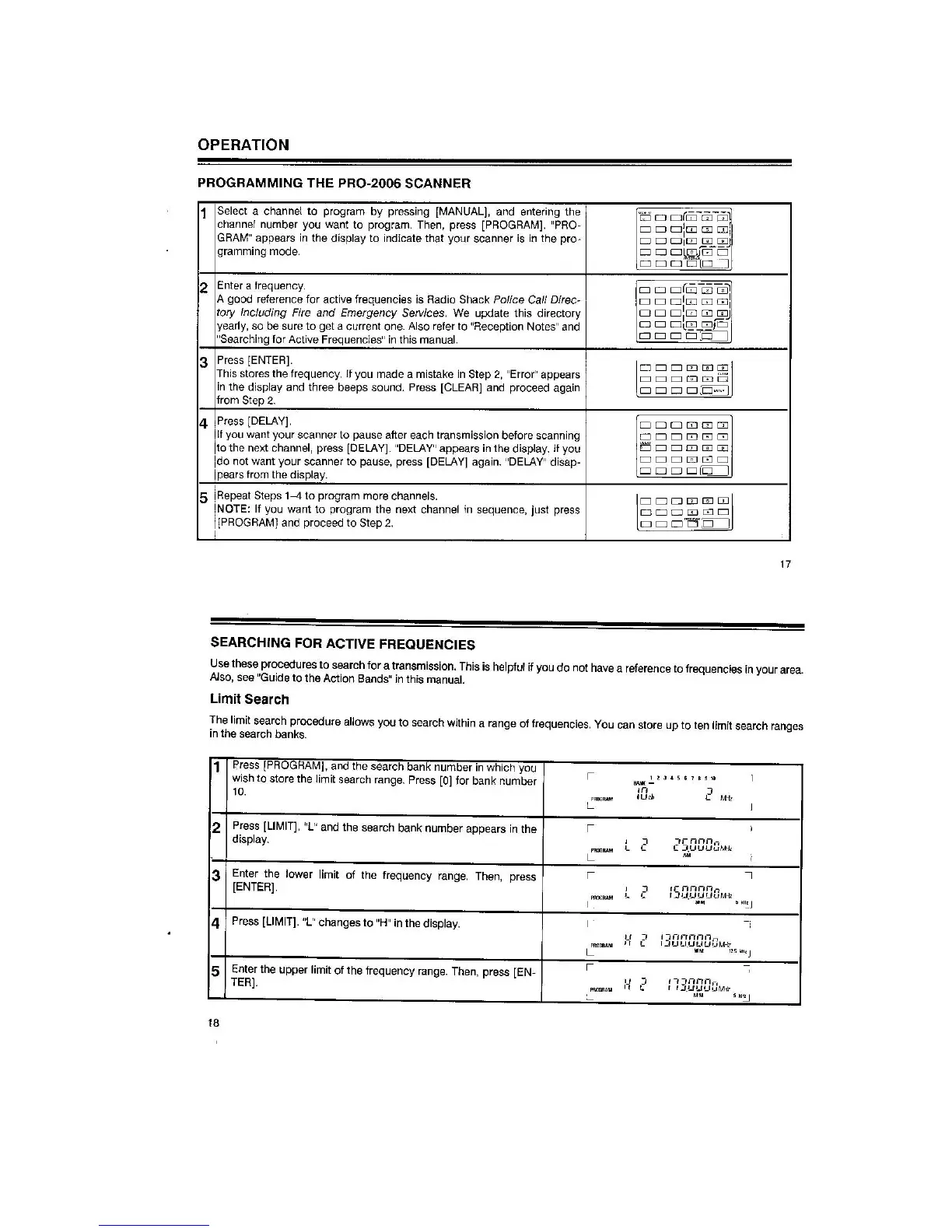 Realistic PRO-2006 - Scanner Operation Procedures; Programming Scanner Channels; Searching for Active Frequencies