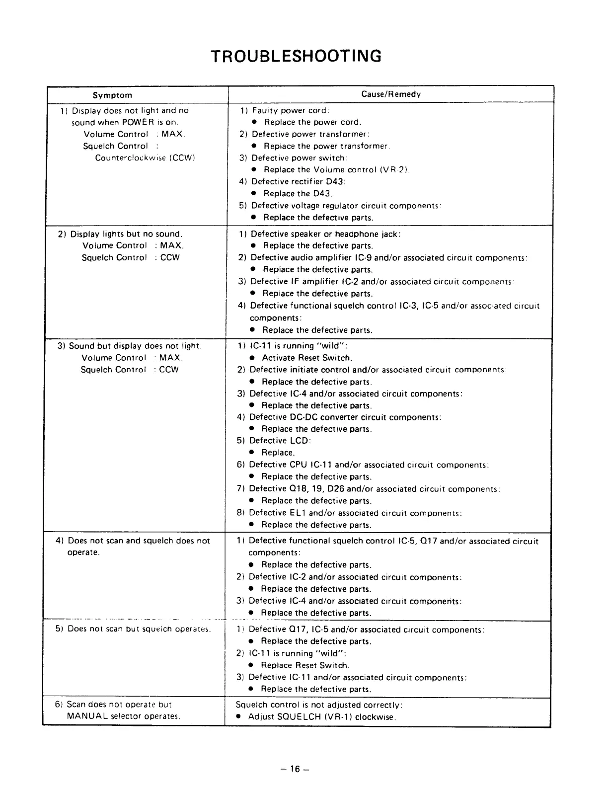 Realistic PRO-2021 - Troubleshooting; Display and Audio Problems; Scanning and Squelch Malfunctions