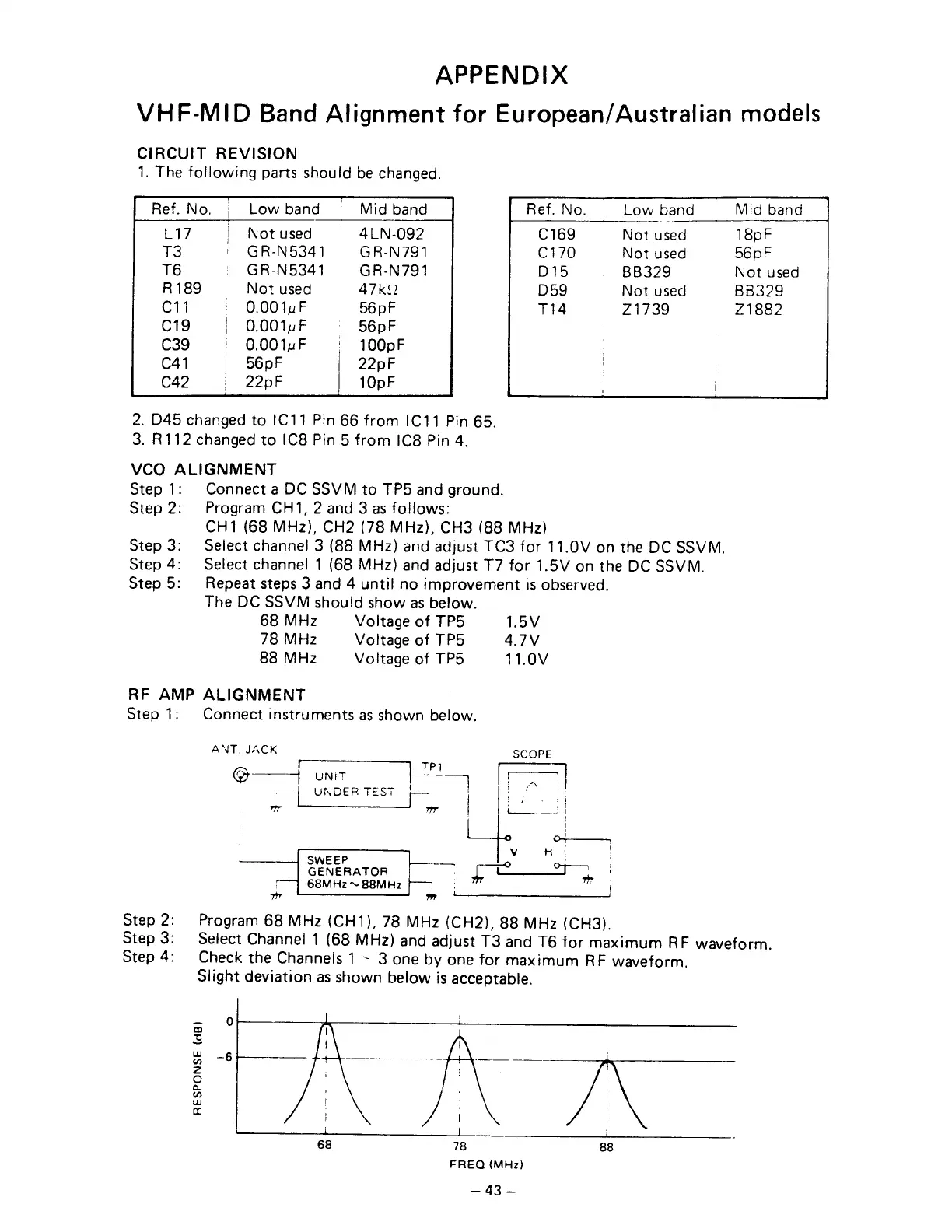 Realistic PRO-2021 - Appendix; Circuit Revision; VHF-MID Band VCO Alignment; VHF-MID Band RF AMP Alignment