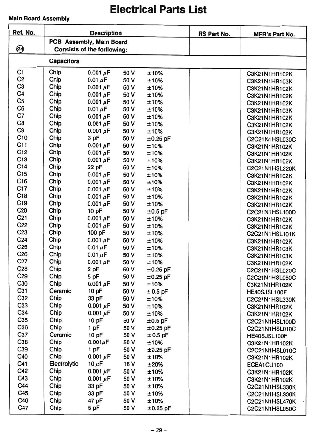 Realistic PRO-2022 - Electrical Parts List; Electrical Components List