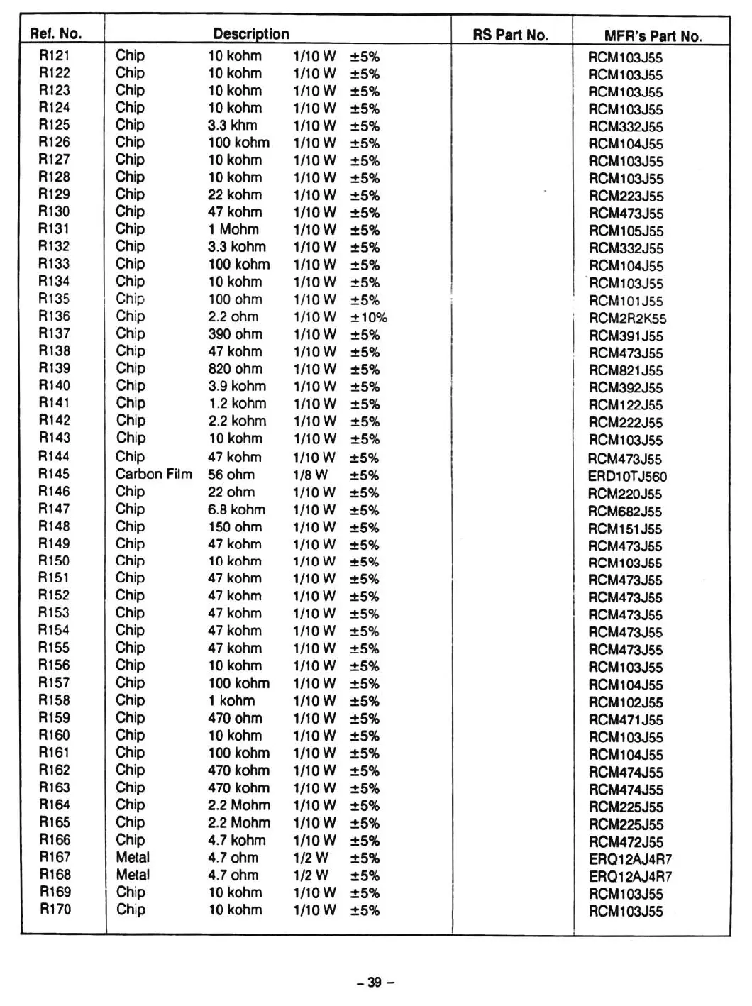 Realistic PRO-2022 - Mechanical Parts List; Mechanical Components List