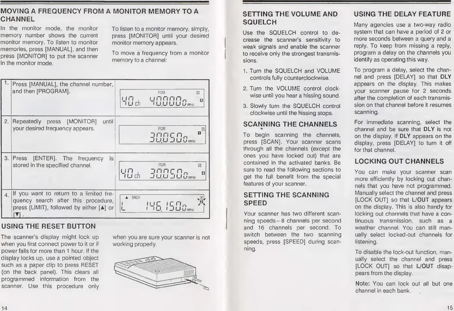 Realistic PRO-2024 - Moving Frequency from Monitor Memory; Using the Reset Button; Setting Volume and Squelch; Scanning the Channels