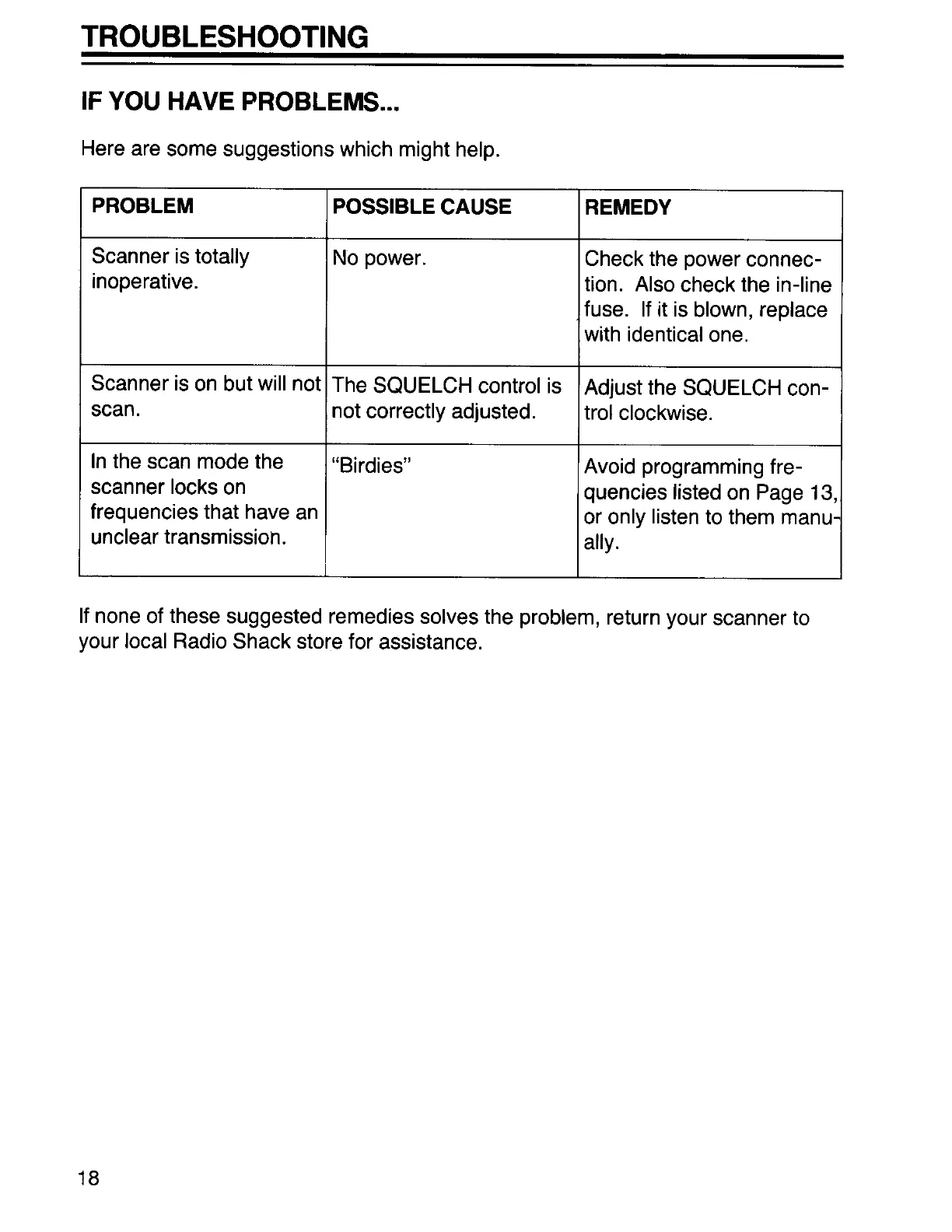 Realistic Pro-2025 - Troubleshooting; If You Have Problems...
