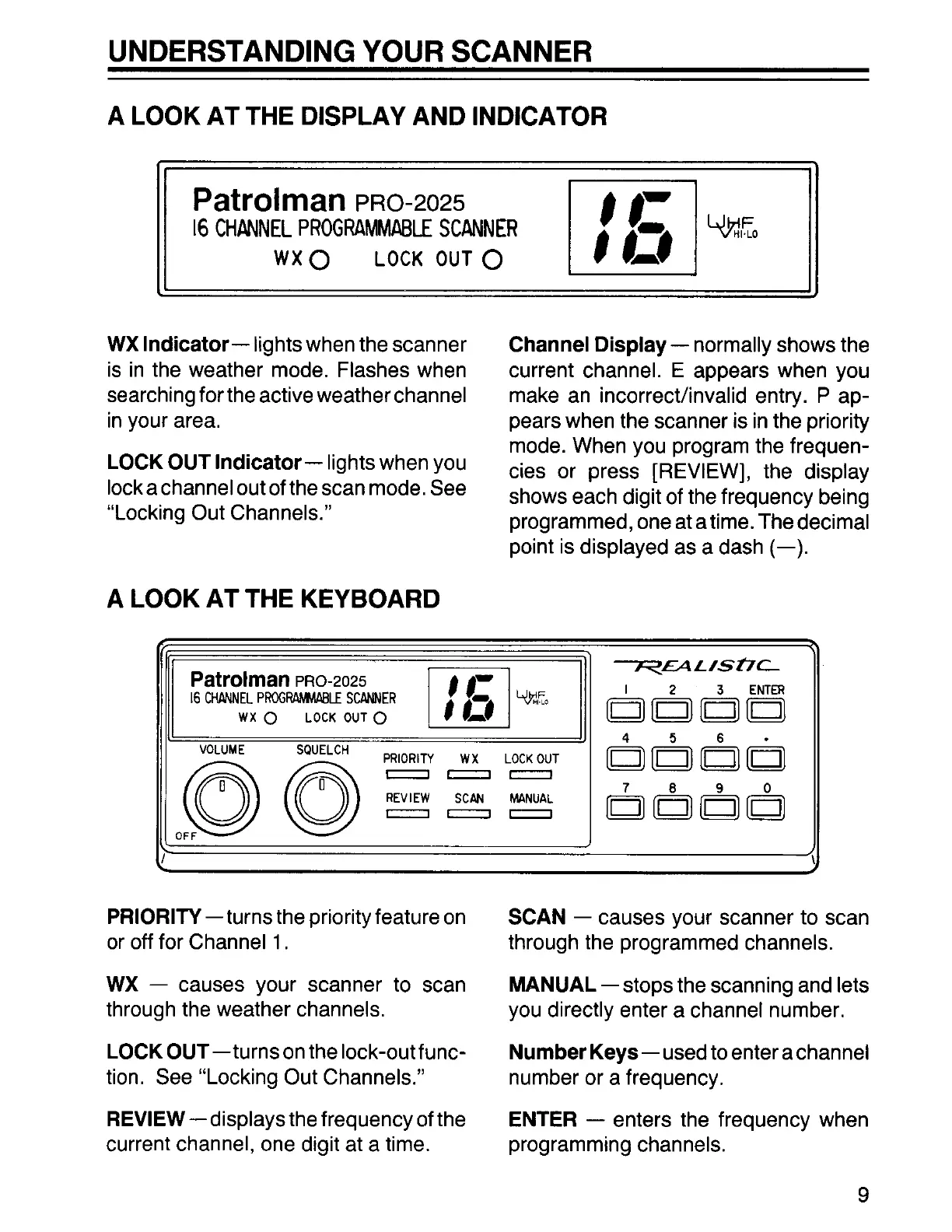 Realistic Pro-2025 - Understanding Your Scanner; A Look at the Display and Indicator; A Look at the Keyboard