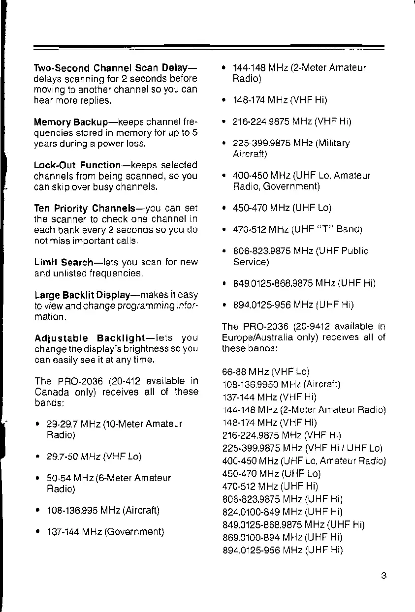 Realistic PRO-2036 - Additional Scanner Features; Scan Delay, Memory, and Display