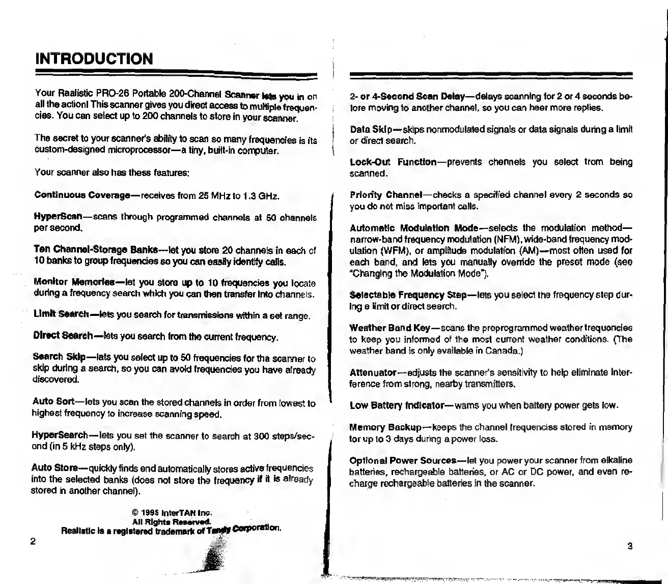 Realistic PRO-26 - Introduction to the PRO-26 Scanner; Continuous Coverage; HyperScan Feature; Ten Channel-Storage Banks