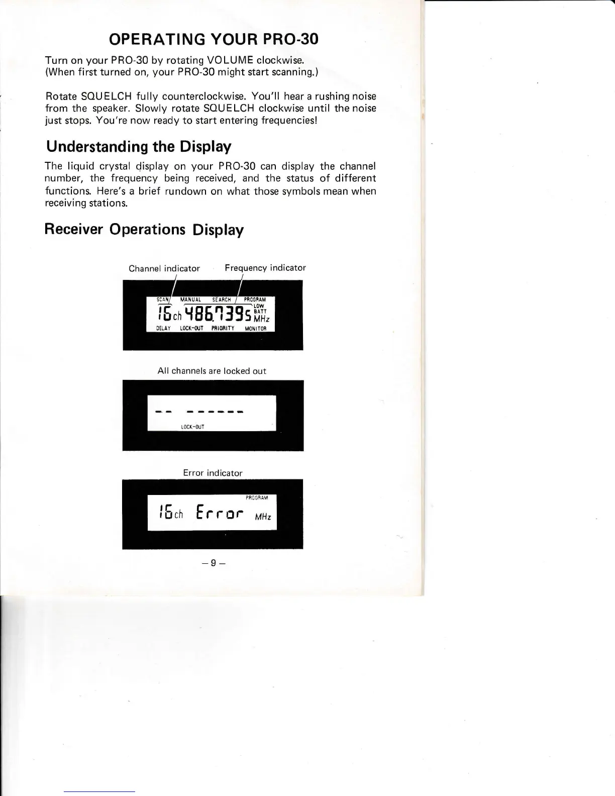 Realistic Pro-30 - Operating Your PRO-30; Understanding the Display