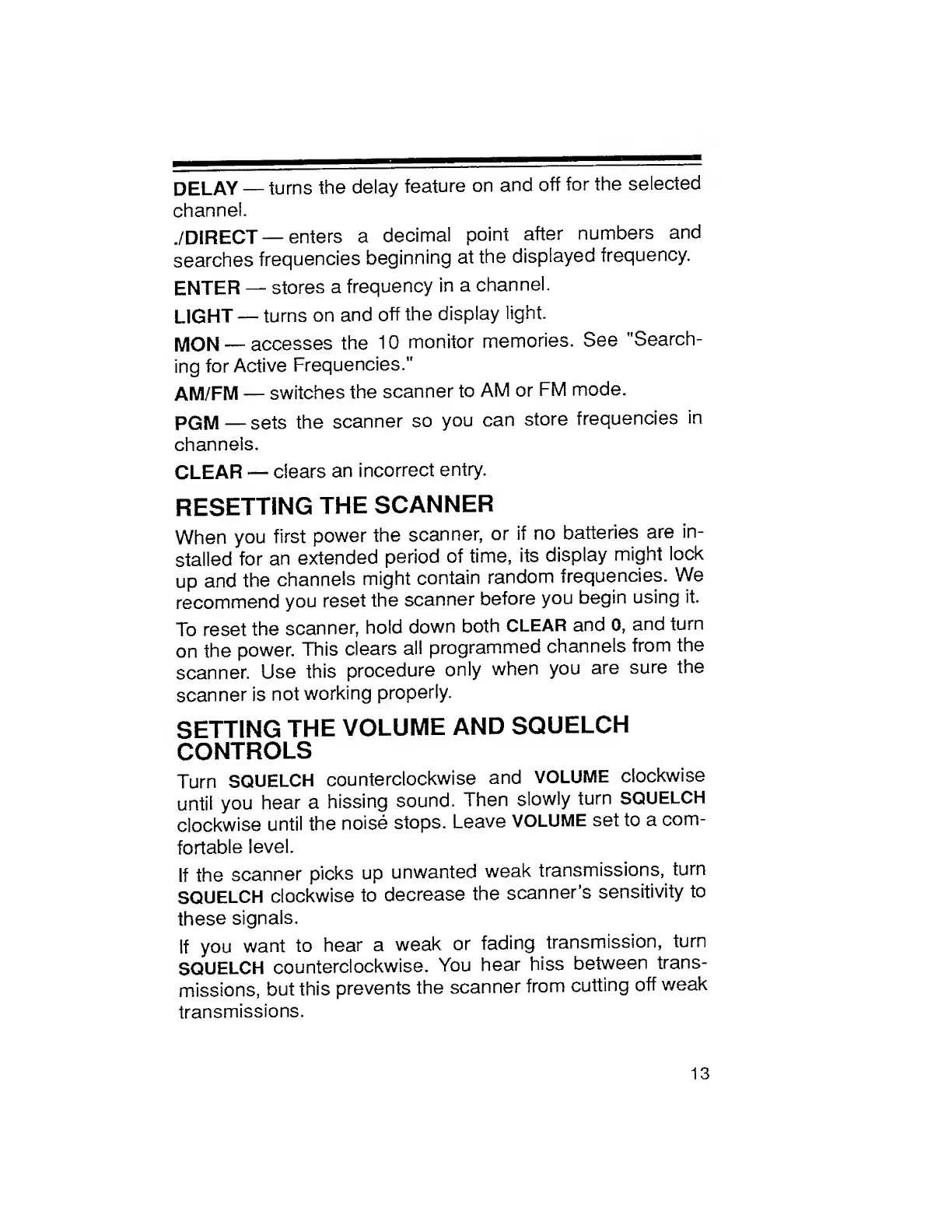 Realistic PRO-43 - SCANNER MANAGEMENT; Resetting the Scanner; Setting Volume and Squelch