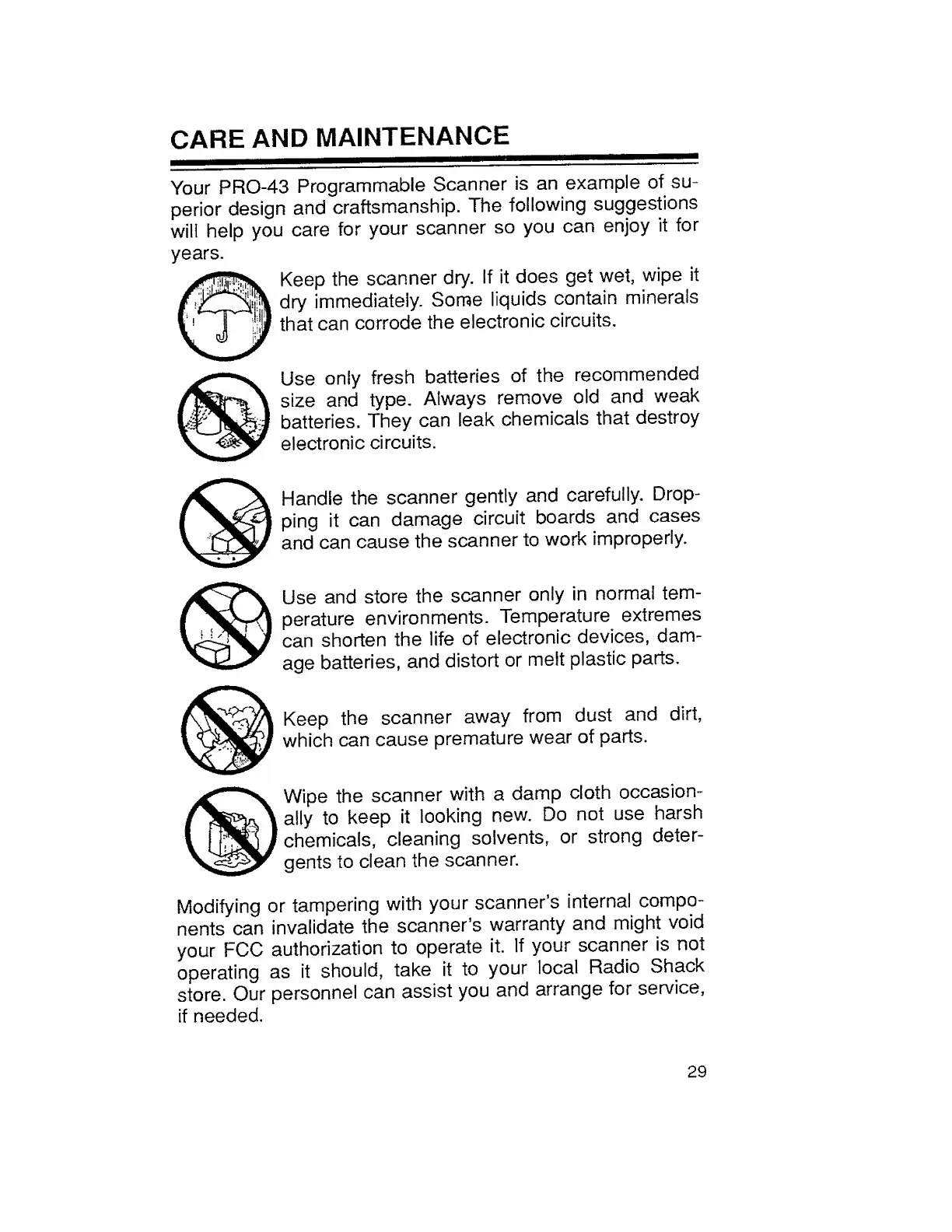 Realistic PRO-43 - CARE AND MAINTENANCE