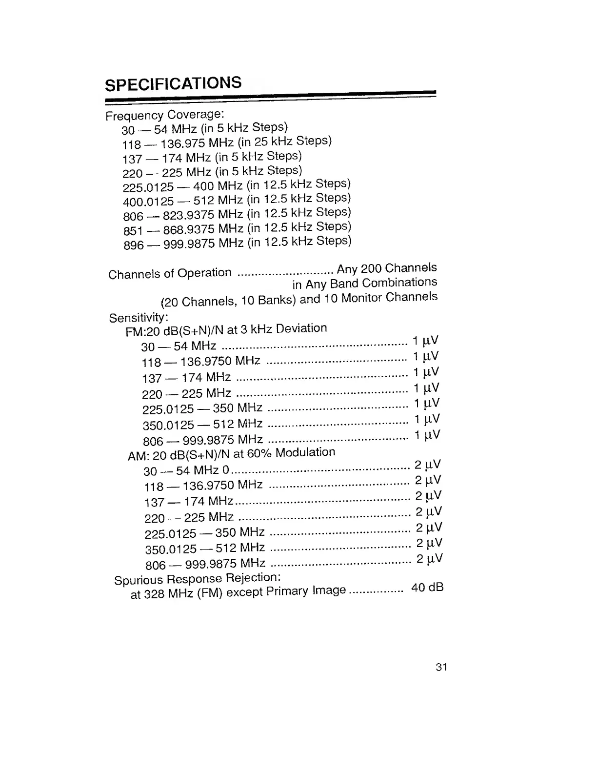SPECIFICATIONS