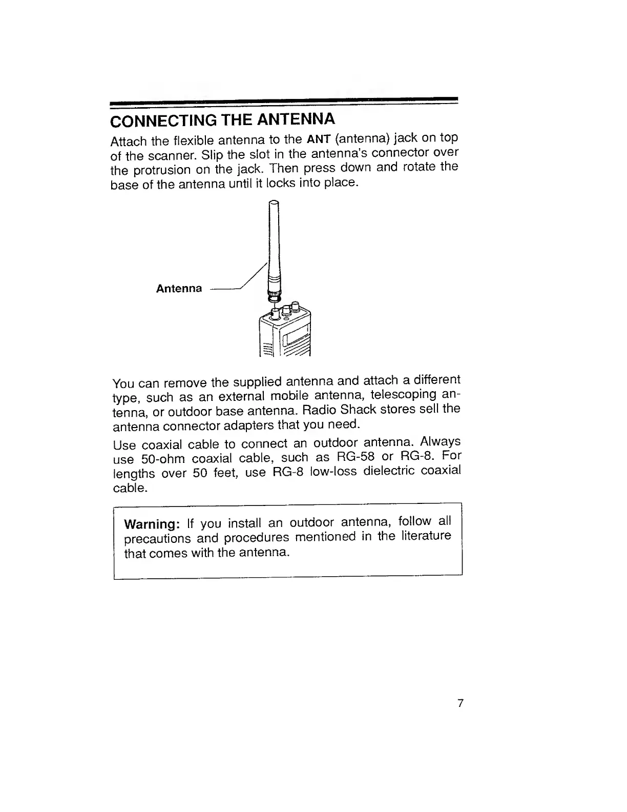 Realistic PRO-43 - CONNECTING PERIPHERALS; Antenna Connection