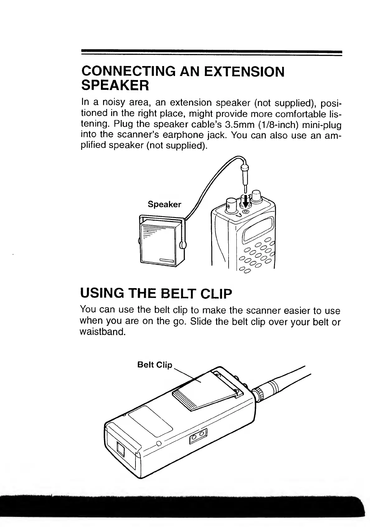 Realistic PRO-50 - Connecting an Extension Speaker; Using the Belt Clip