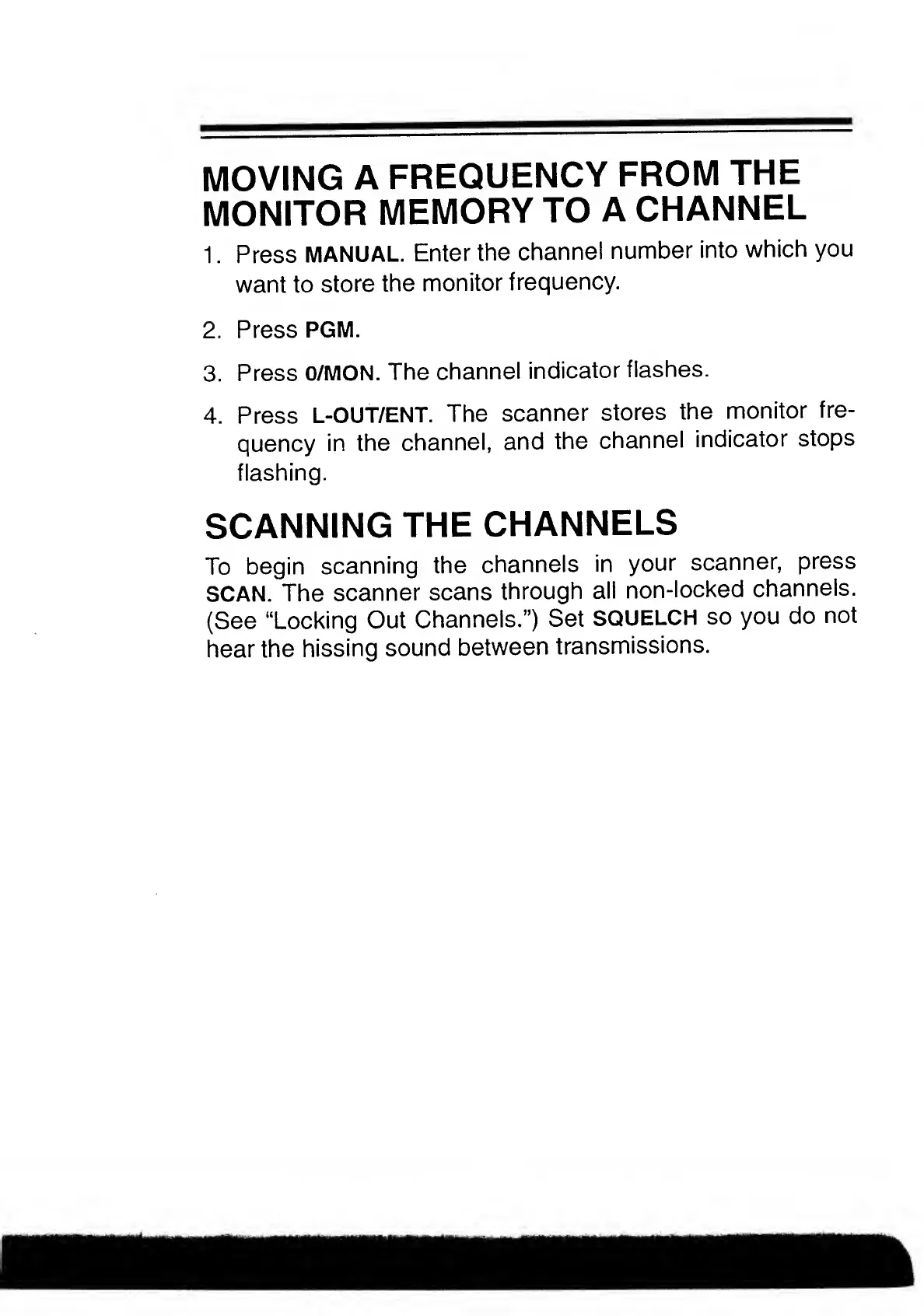 Realistic PRO-50 - Moving a Frequency from Monitor Memory to Channel; Scanning the Channels