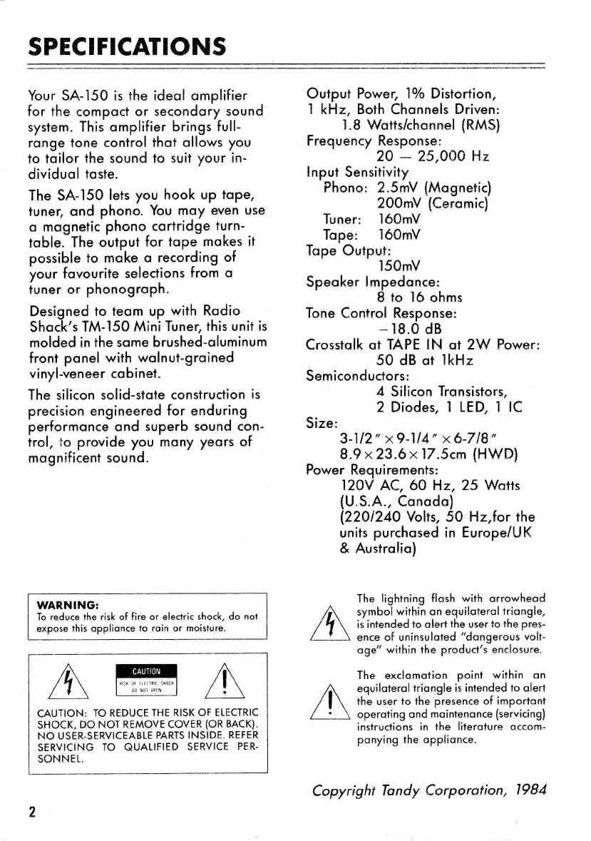 Realistic SA-150 - Specifications