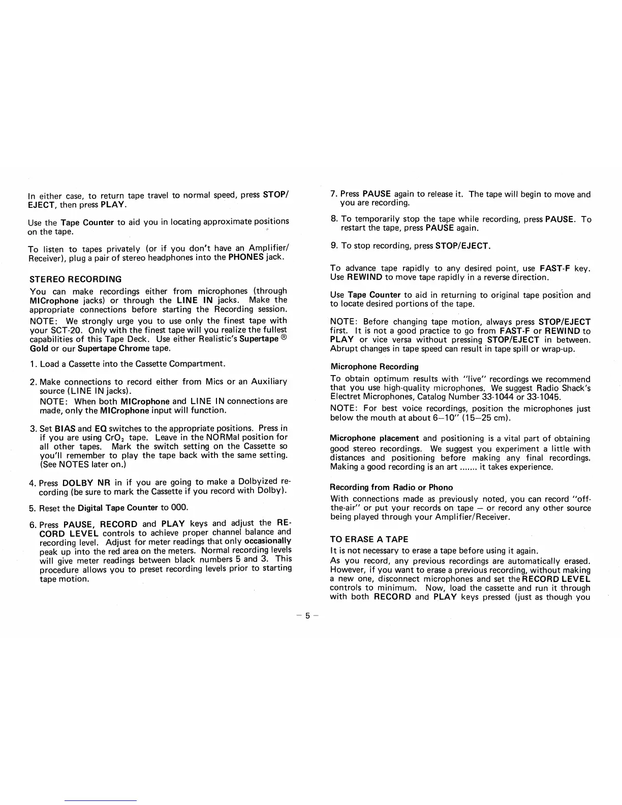 capabilities of this Tape Deck. Use either Realistic's