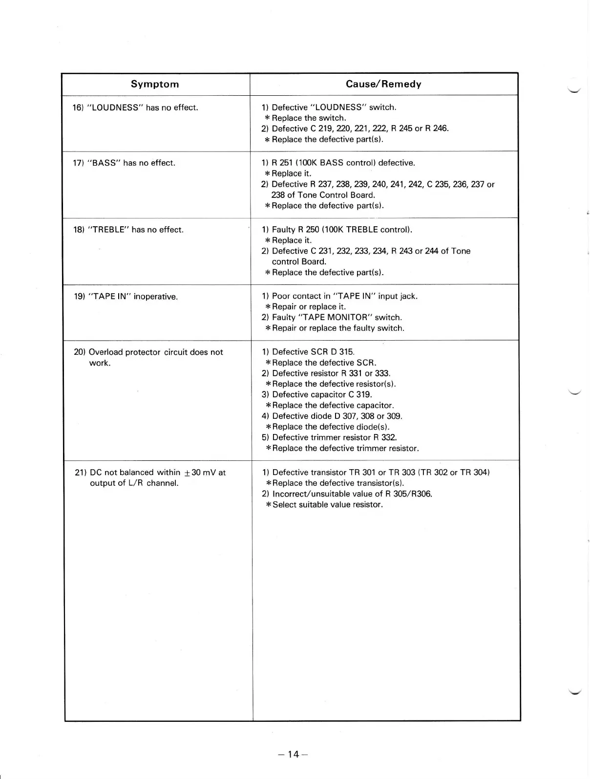 2) Defective C 231,232,233,234, R 2(l or 24 ot Tone