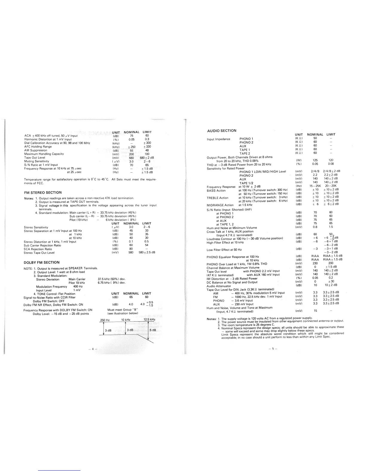 Realistic STA-2100D - Electrical Performance Specifications; AM Section Performance; FM Stereo Section Performance