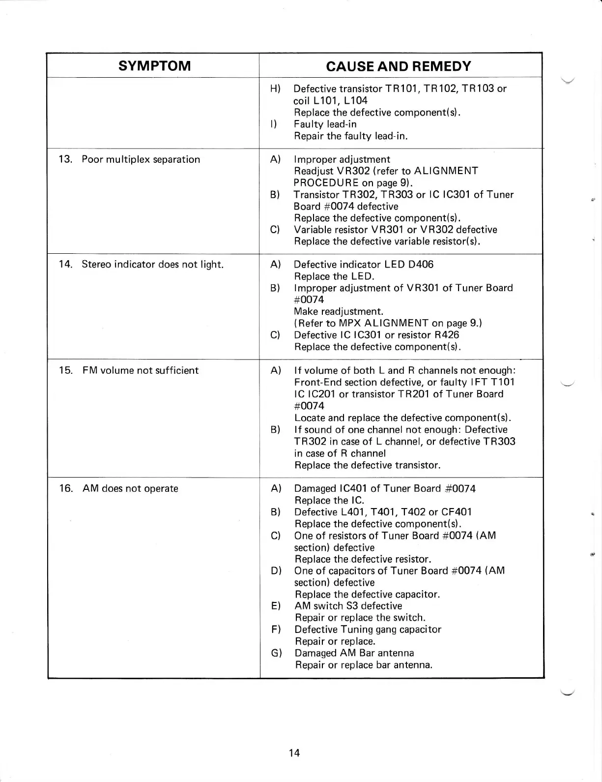 Replace the defective variable resistor(s).