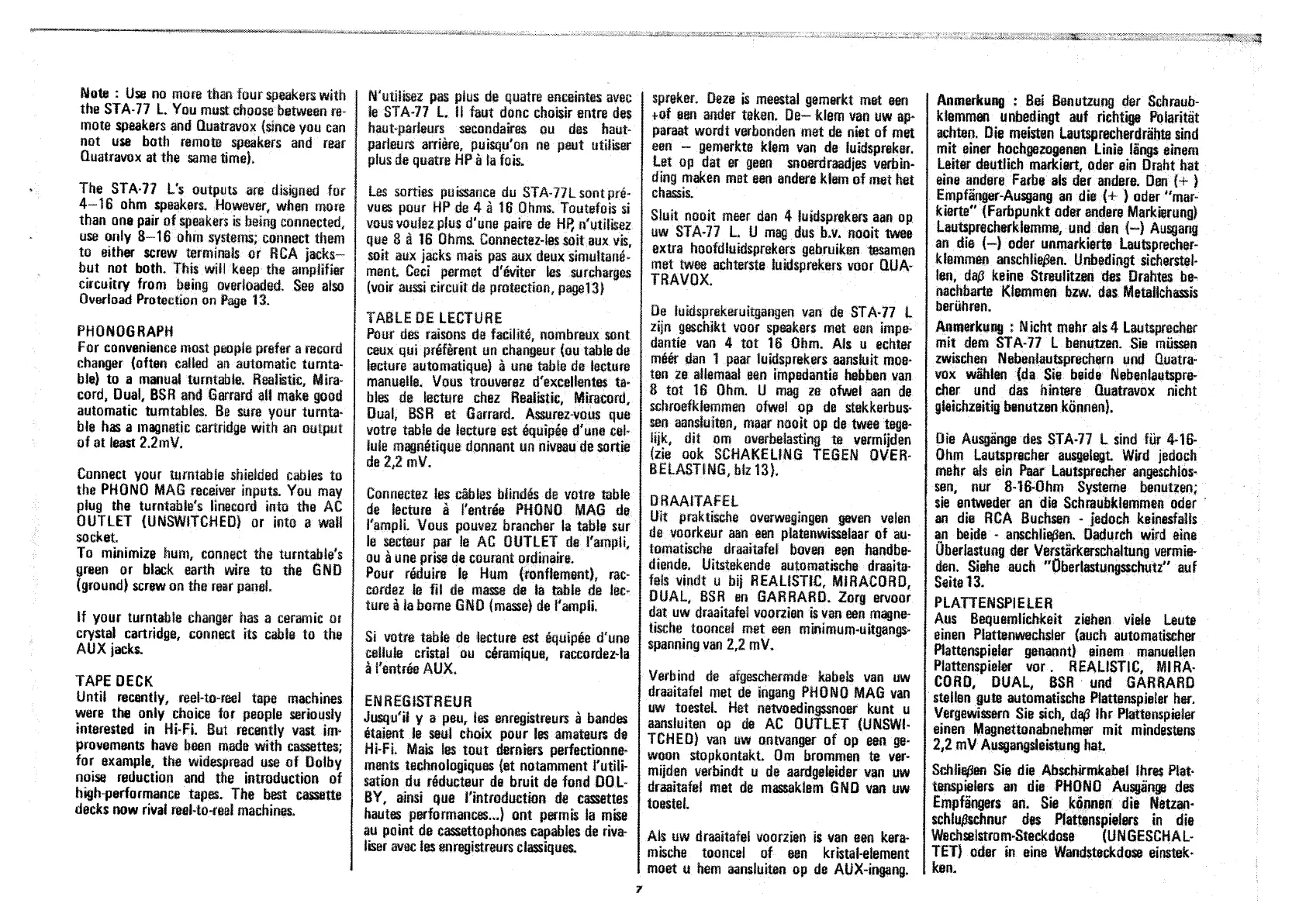 Realistic STA-77L - Phonograph; Tape Deck