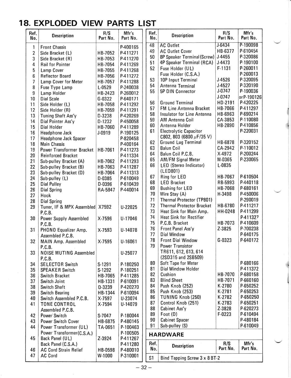 Realistic STA-78 - Exploded View Parts List
