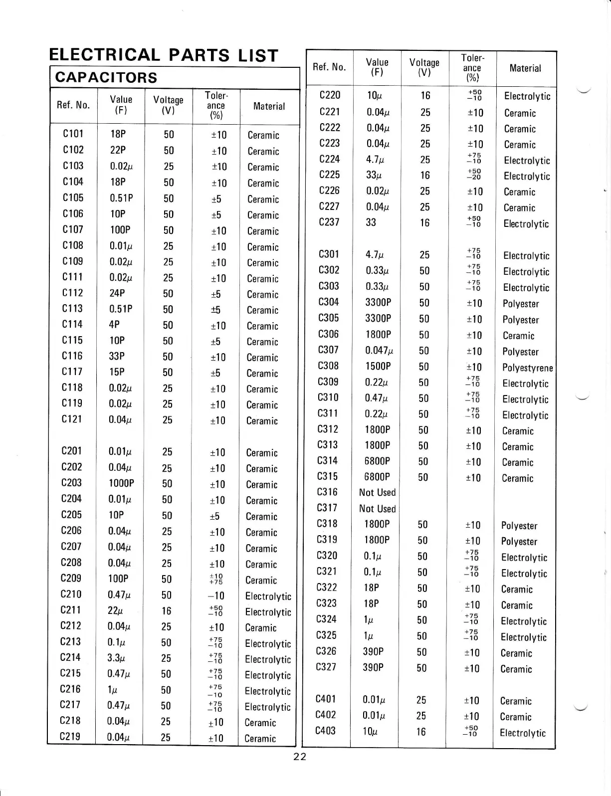 Realistic STA-85 - Electrical Parts List