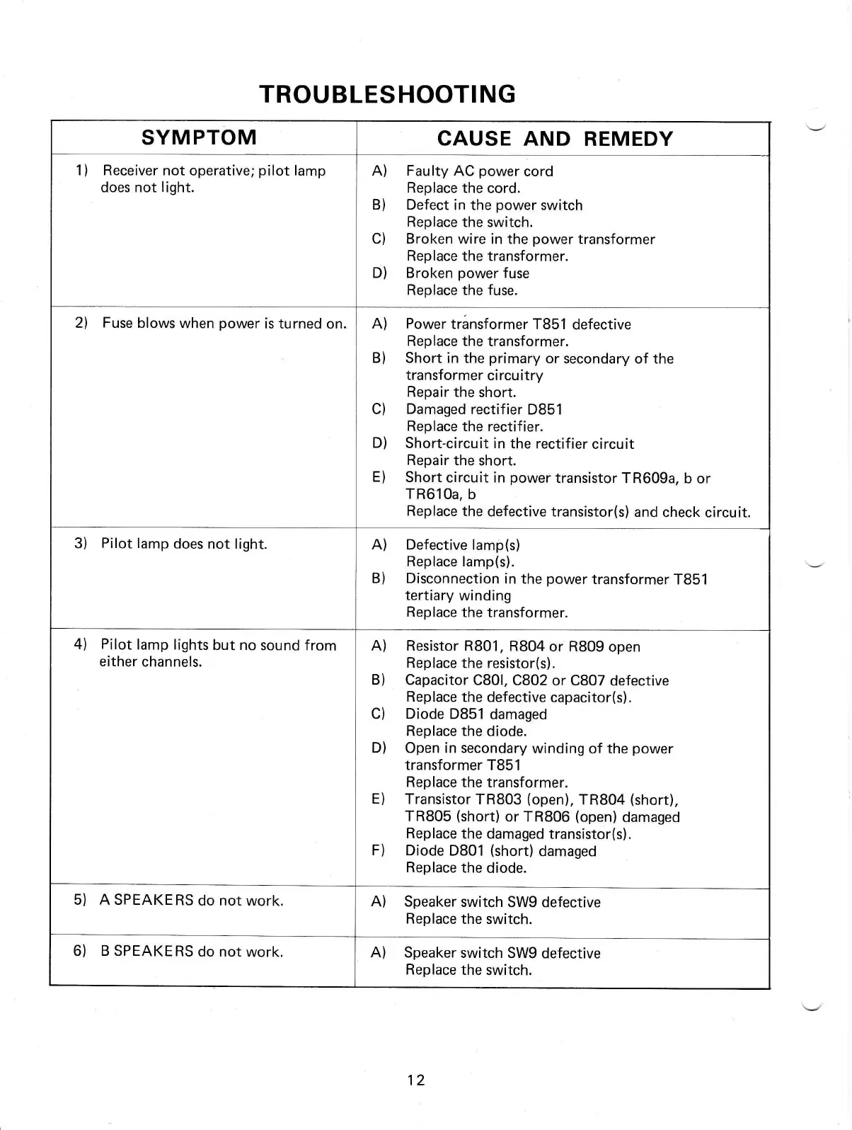 Realistic STA-95 - Troubleshooting; Fault Diagnosis and Remedies