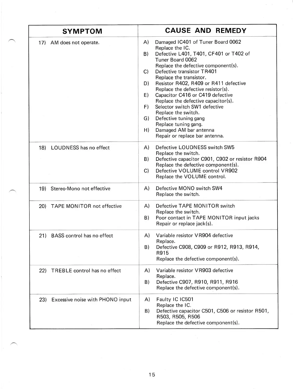 Variable resistor VR903 defective